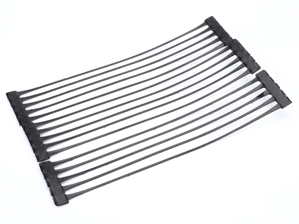 單向拉伸的土工格柵是由高分子聚合物經(jīng)擠出壓成薄板再?zèng)_規(guī)則孔網(wǎng),然后縱向拉伸而成。這種過程中使高分子成定向線性狀態(tài)并形成分布均勻、節(jié)點(diǎn)強(qiáng)度高的長橢圓形網(wǎng)狀整體性結(jié)構(gòu)。此種結(jié)構(gòu)具有相當(dāng)高的拉伸強(qiáng)度和拉伸模量,特別是我公司此類產(chǎn)品更具有超國際水平的高早期(伸長率在2%—5%)拉伸強(qiáng)度和拉伸模量。給土壤提供了理想的力的承擔(dān)和擴(kuò)散的連鎖系統(tǒng)。該產(chǎn)品拉伸強(qiáng)度大(>150Mpa),適應(yīng)各種土壤,是目前廣為采用的加筋加固材料。
